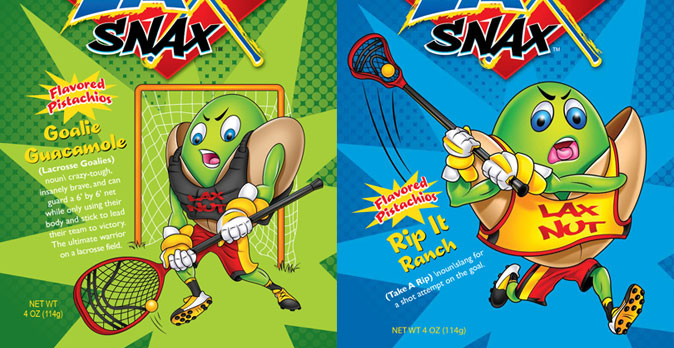 LAX SNAX: Flavored Pistachios Branding and Fund-raiser Package Design.