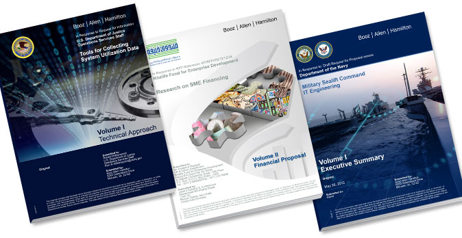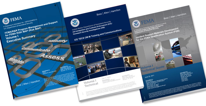 Multiple concepts of Proposal Graphic Covers for Government Agencies using photo composites, digital illustration, and type layout.