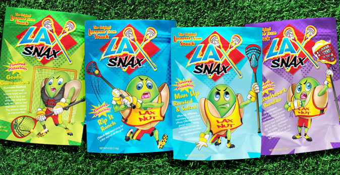 LAX SNAX: Flavored Pistachios Branding and Fund-raiser Package Design.
