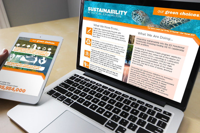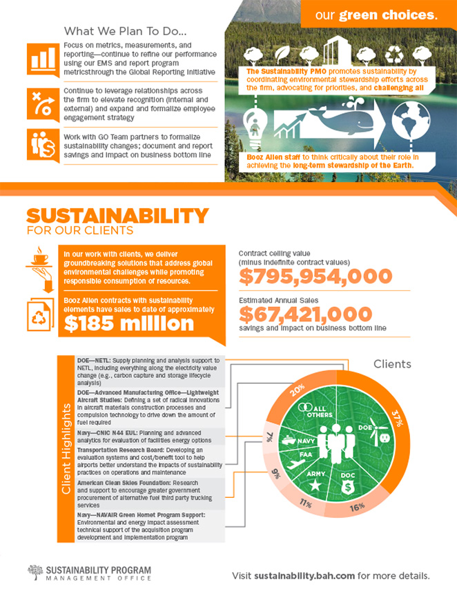 A list of past and current accomplishments for the Sustainability Team. A yearly photo contest allows for the use of a wonderful collection of employee photos from around the world.