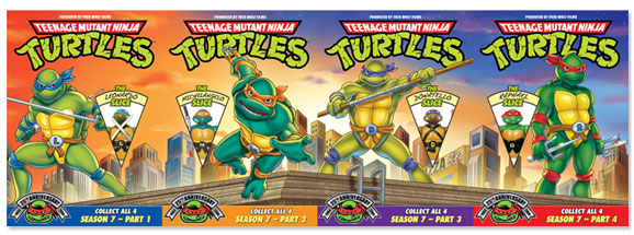 From sketch to color rendering with airbrush style for the classic turtle crew. Created as final key art and as a package set that combines to make a panoramic cityscape scene.