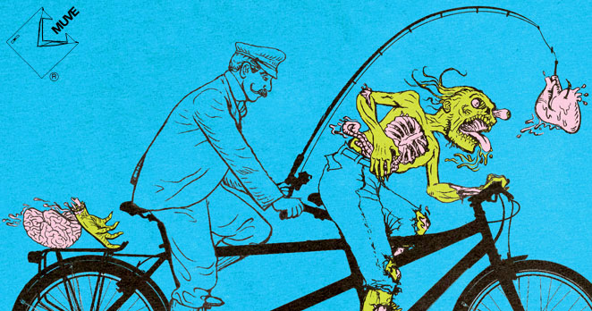 Brains, hand, and heart keep that zombie chasing what it needs to survive as the rider stays in control of the situation. #RideOrDie!
